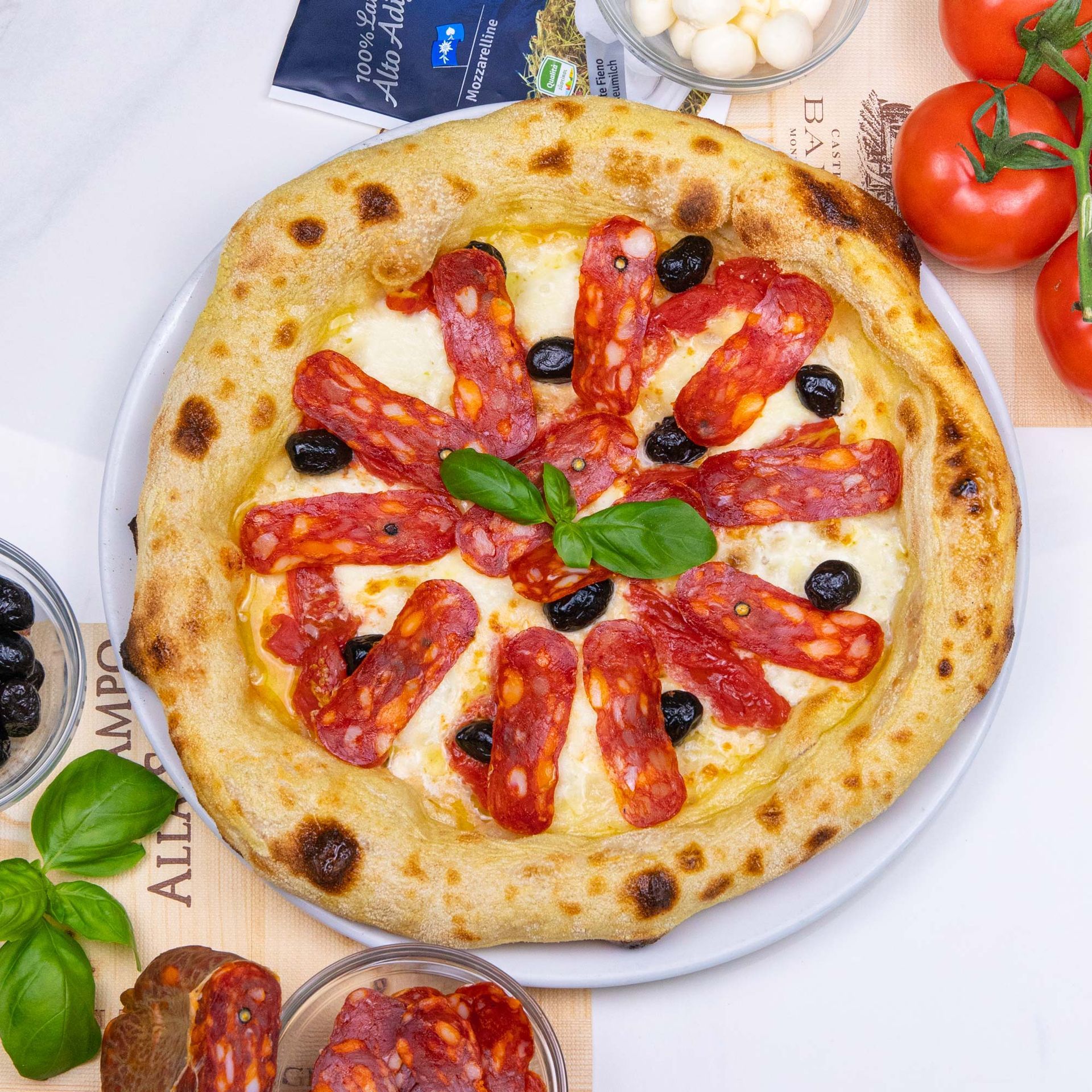 La pizza da asporto del locale di Bolzano è realizzata esclusivamente con un impasto di lievito madre, farine selezionate ad alta digeribilità e una maturazione di almeno 48 ore a temperatura ambiente e controllata tra i 4 e i 24 gradi.